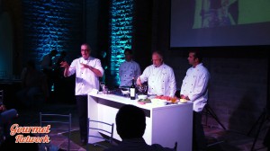 Márcio Mussarela profere uma palestra fazendo analogias entre o mundo da culinária com o mundo dos negócios enquanto prepara uma receita que será servida aos convidados logo após o término da apresentação.