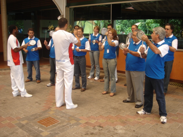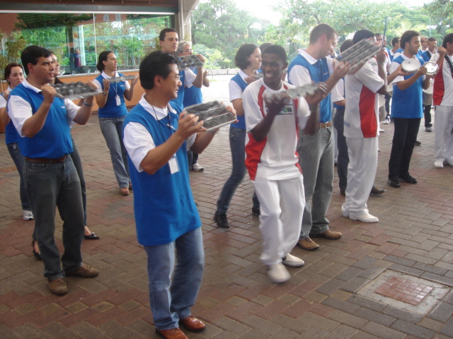 Todos ensaiaram, aprenderam a tocar os instrumentos e ao final formaram uma bateria extremamente afinada.