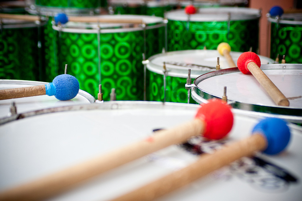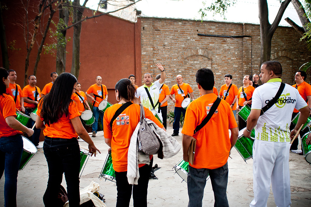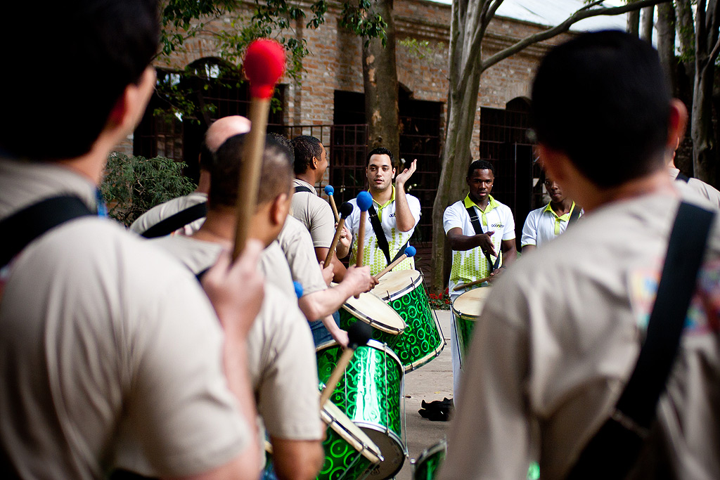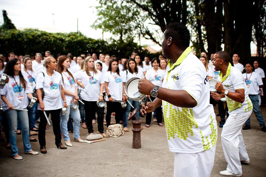 Os colaboradores se entregaram à atividade e puderam sentir na pele a emoção e a energia de uma bateria de escola de samba.