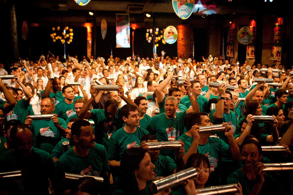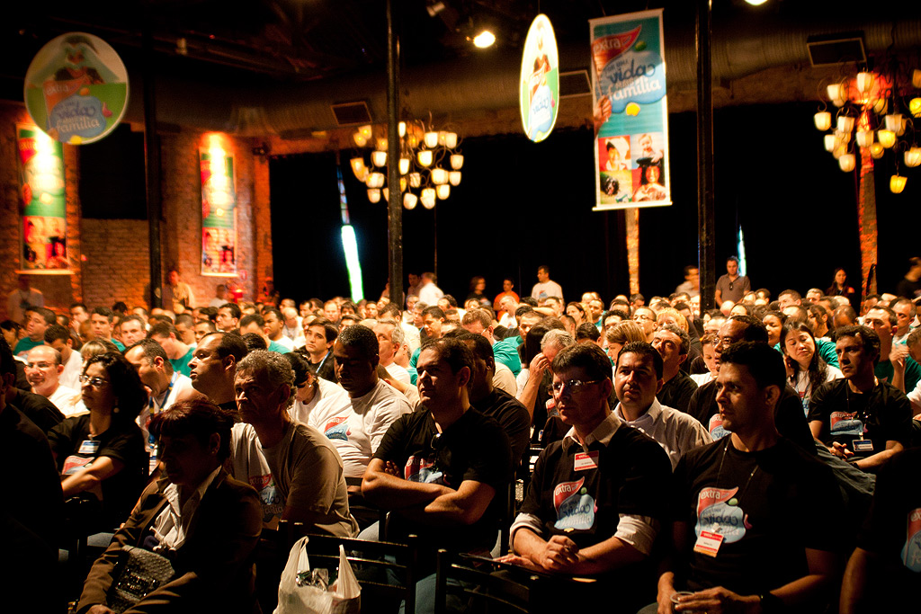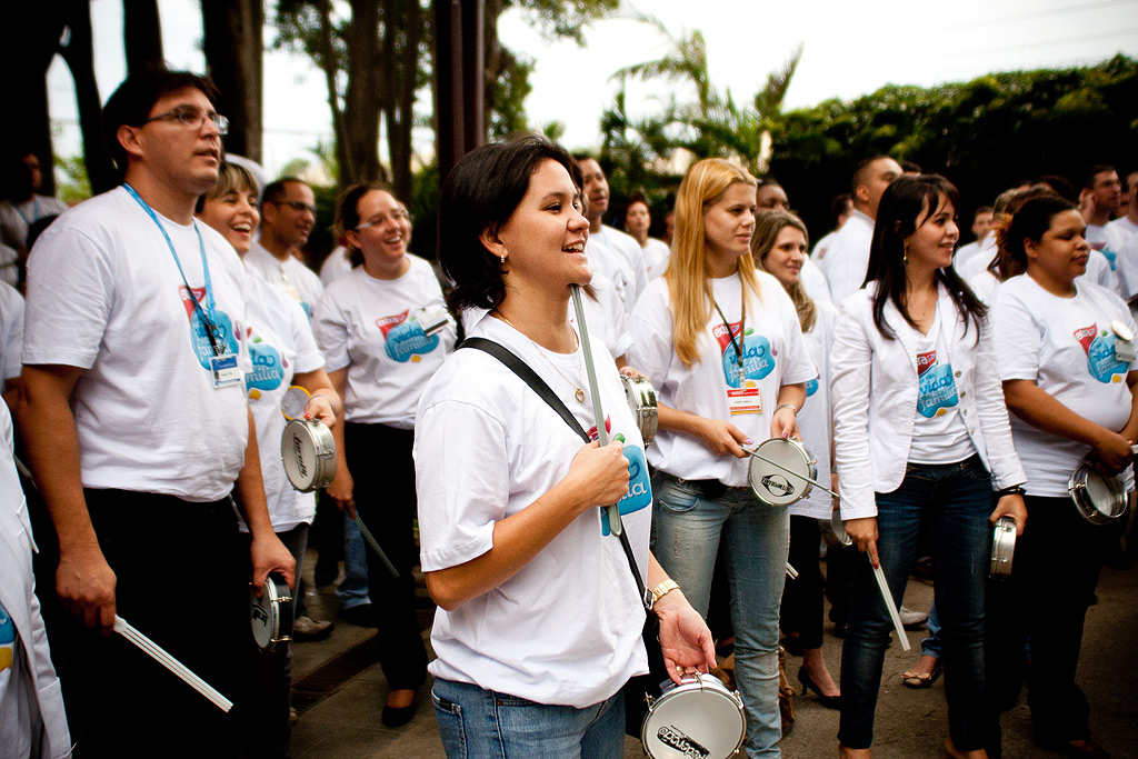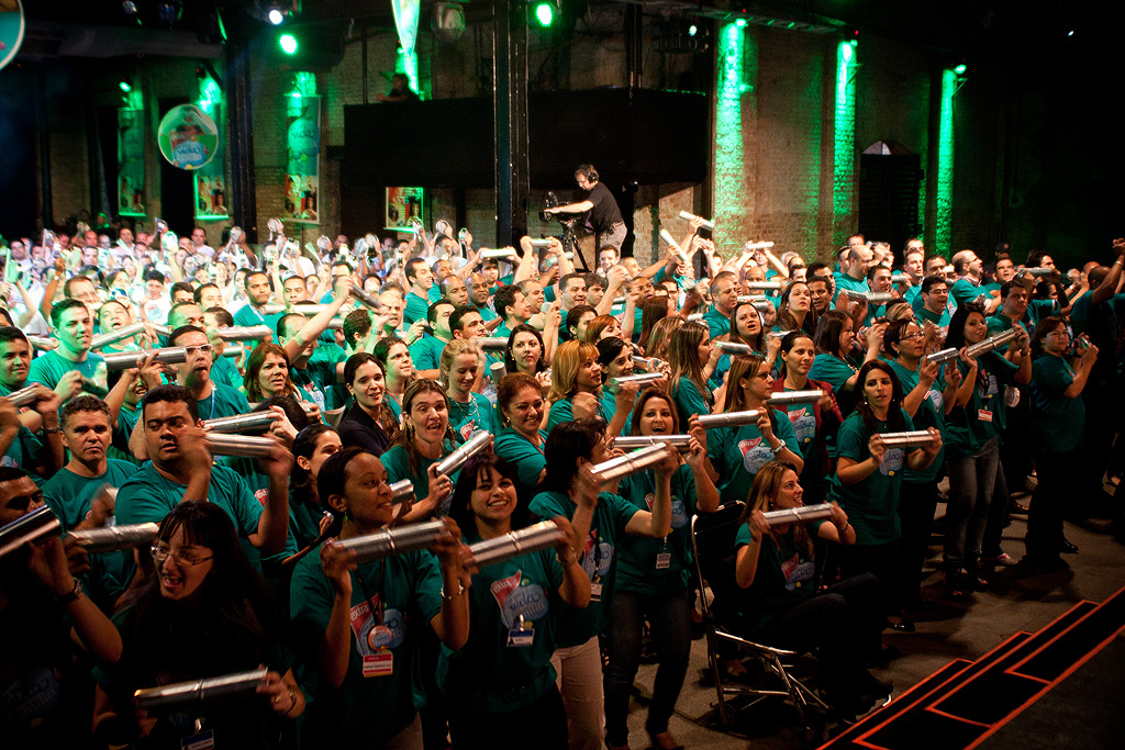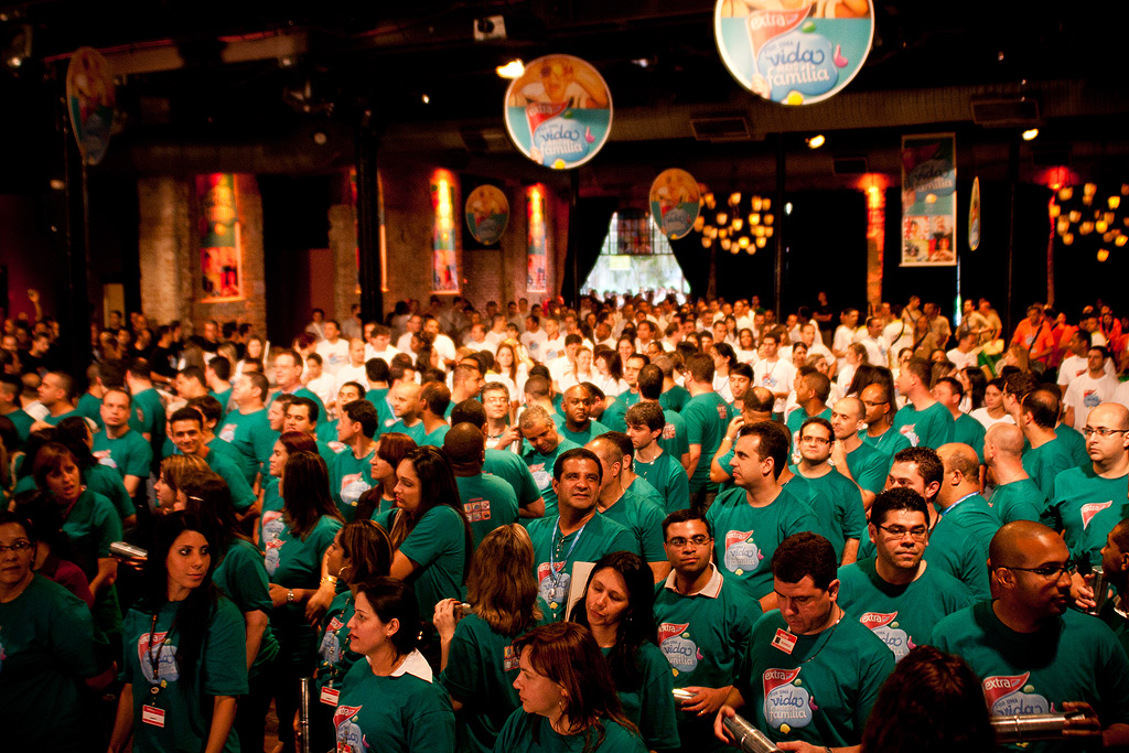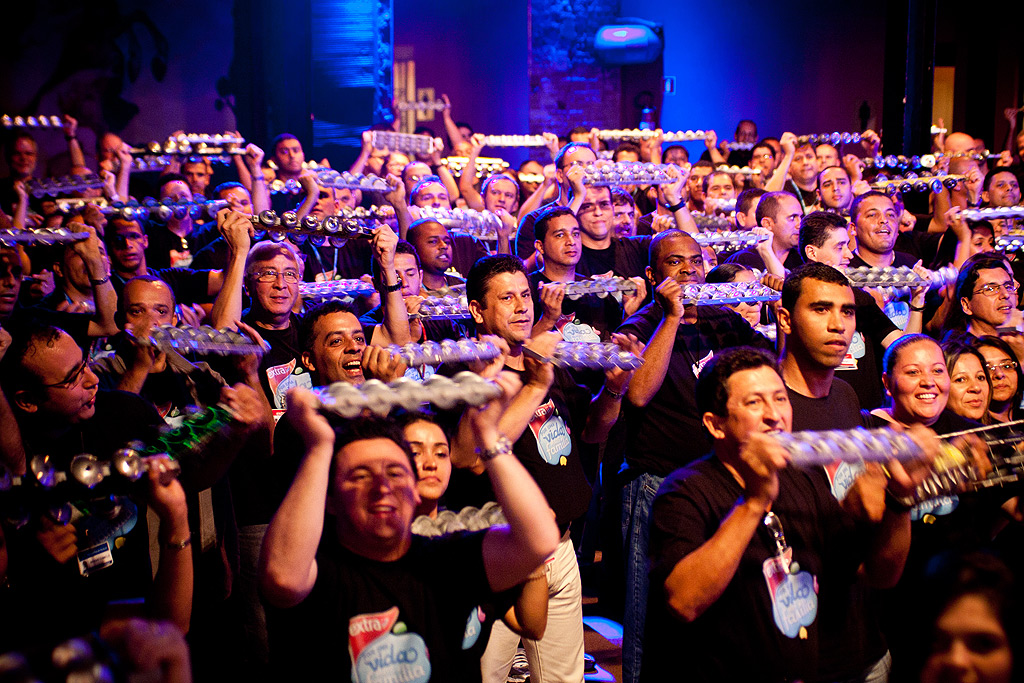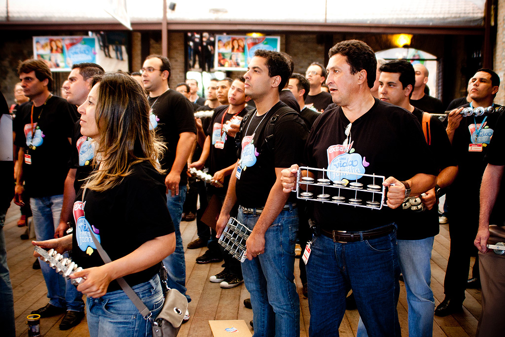 A dinâmica escola de samba realizada na convenção do Extra foi um sucesso.