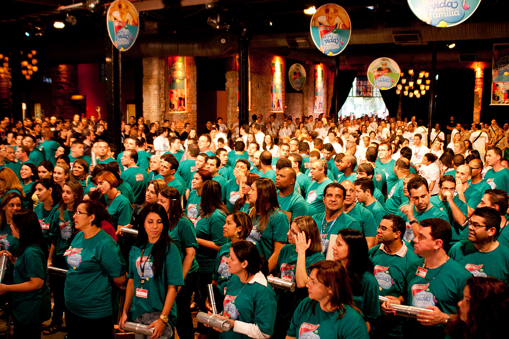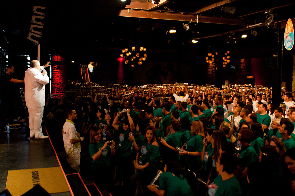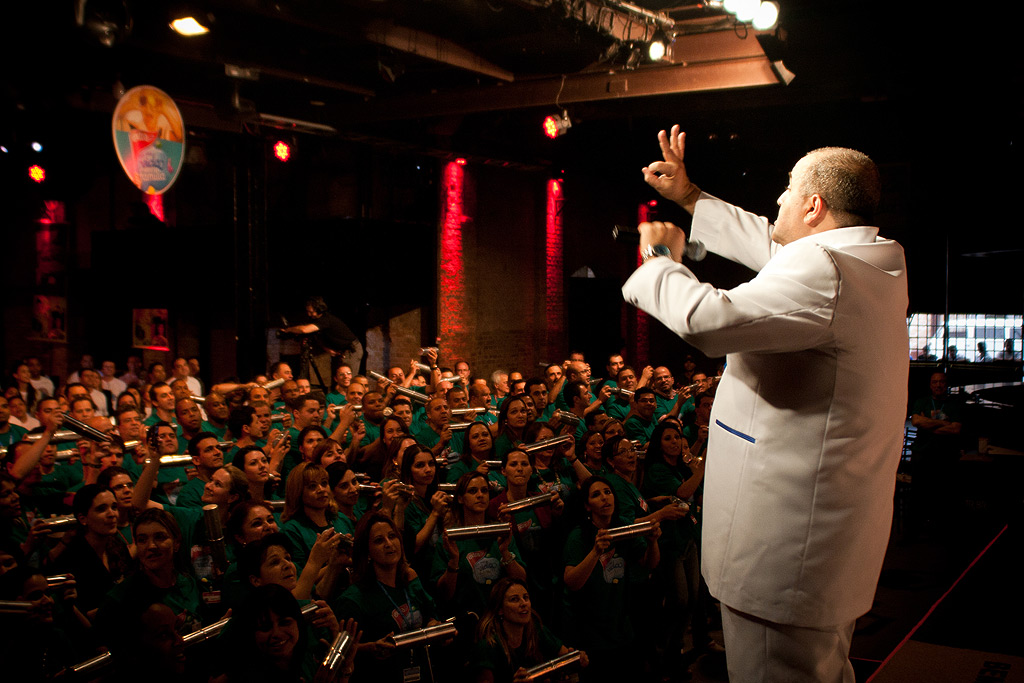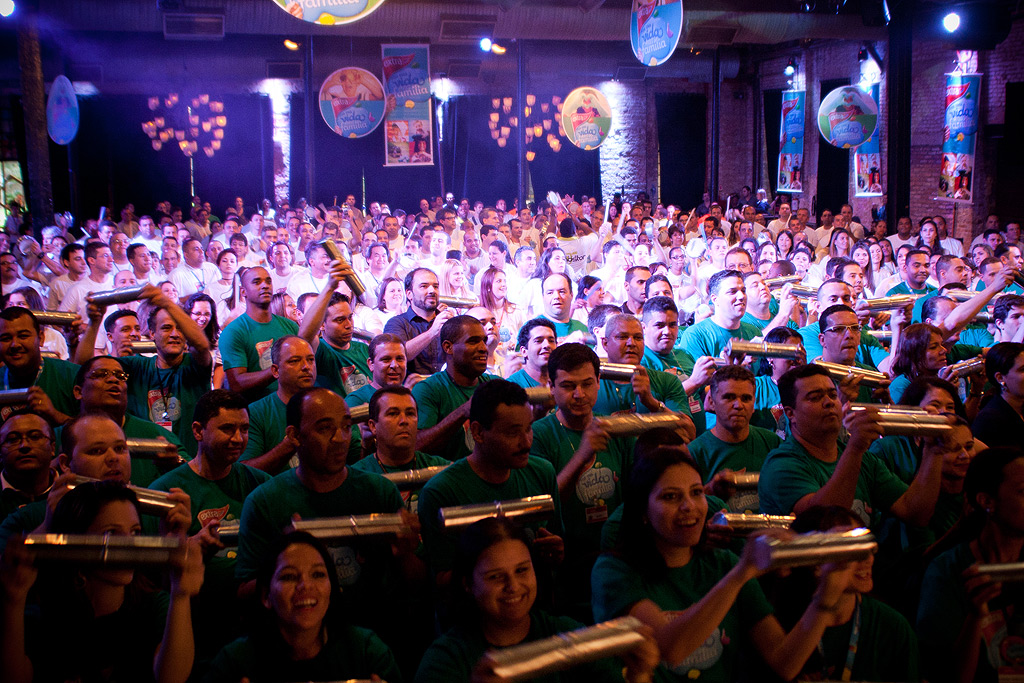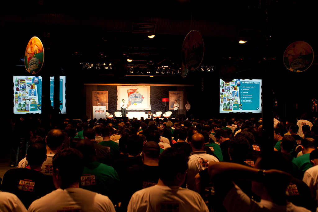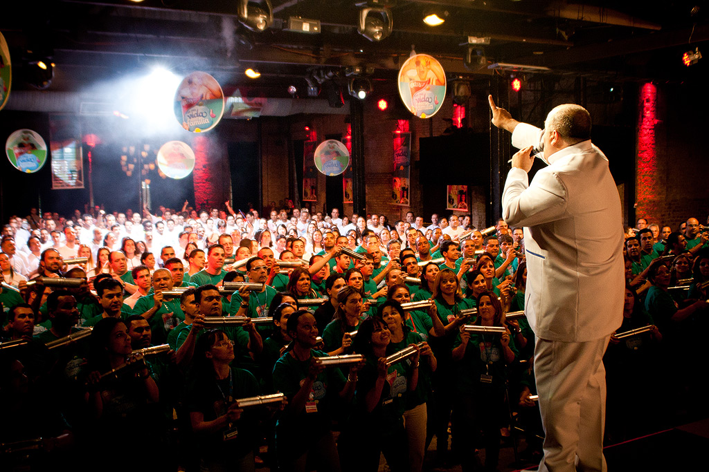 A dinâmica escola de samba realizada na convenção do Extra foi um sucesso.