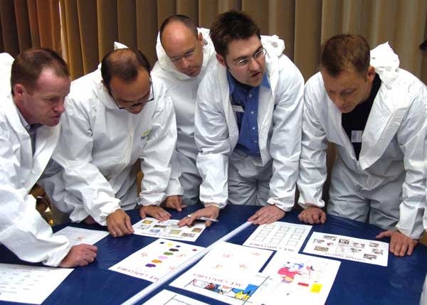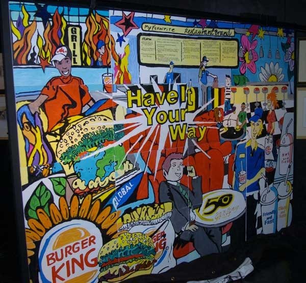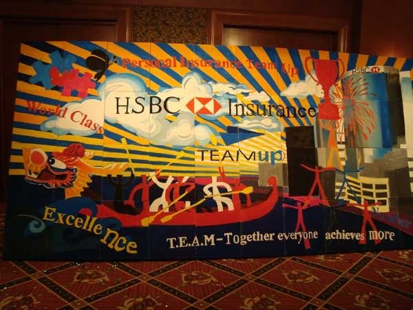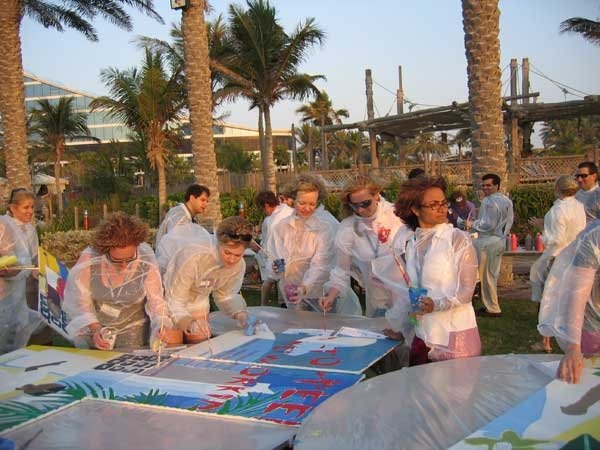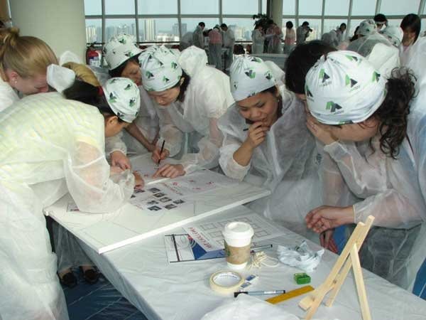 - Armados com pincéis, esponjas, tintas e um mínimo de informação (os participantes não fazem ideia de como será a imagem final), as equipes deverão, então, exercitar a comunicação e a colaboração efetiva entre elas, assegurando que todas as linhas do desenho se complementem e que as cores batam.
