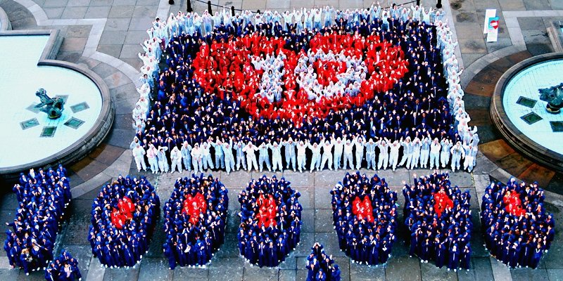 - Assim que todos estiverem finalmente posicionados, vamos filmar e fotografar o seu logotipo ao vivo, de cima, para criar um impressionante e duradouro registro de sua conquista.